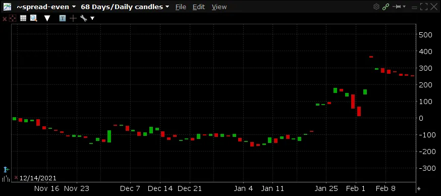 Why would you want to trade a spread? Well, let’s consider the QQQ which is an index fund of the top-100 largest non-financial companies on the Nasdaq which includes both MSFT and FB among others. If the market as a whole experiences a major adjustment from something like a change in the price multiples that investors are willing to pay or a shift away from risky growth stocks towards defensive stocks due to changing economic conditions, MSFT and FB (both being large technology companies) will most likely be similarly impacted. However, due to the individual circumstances that apply to each company they will most likely not be impacted equally. While the QQQ is falling as a whole you could potentially still see a profit if, against your long MSFT position, you had an equally short FB position. That is, as long as the overall negative impact to MSFT is relatively better than the negative impact to FB you would come out ahead.
