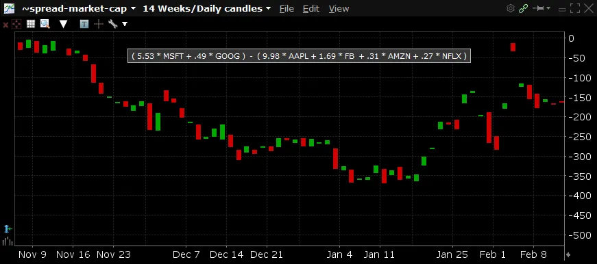 In episode 54 of the All-In podcast, Chamath brought up the idea of initiating a spread trade within big tech stocks as a way of protecting against a market downturn. It has been three months since the episode aired and we’ve already had a pretty good market correction with the possibility of some more to go. So, how did the spread trade do? If you had entered the trade when the episode aired would you have made money? Let’s take a look.